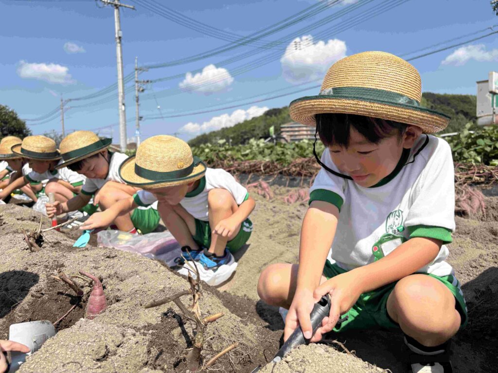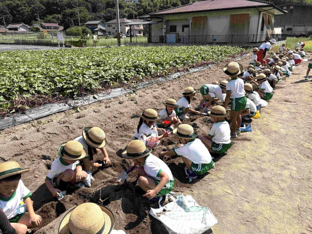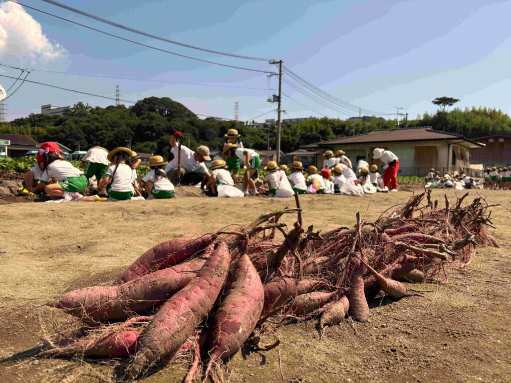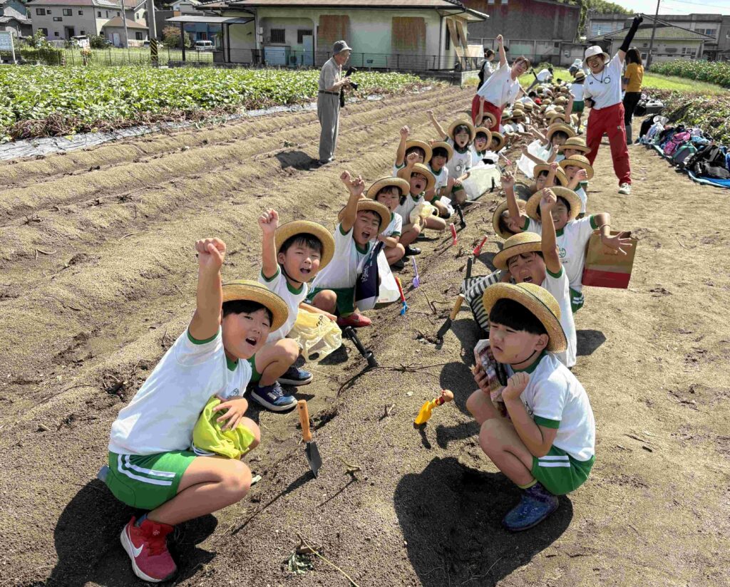 子どもたちが、箕島町のサツマイモ畑においもほりに行きました。