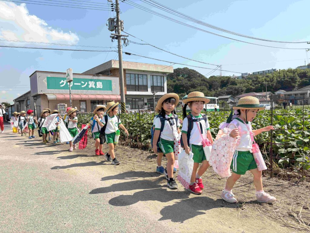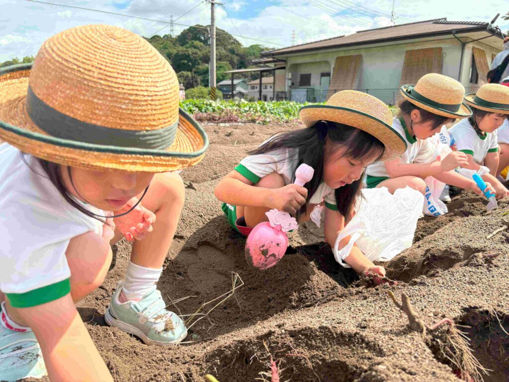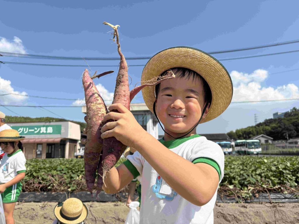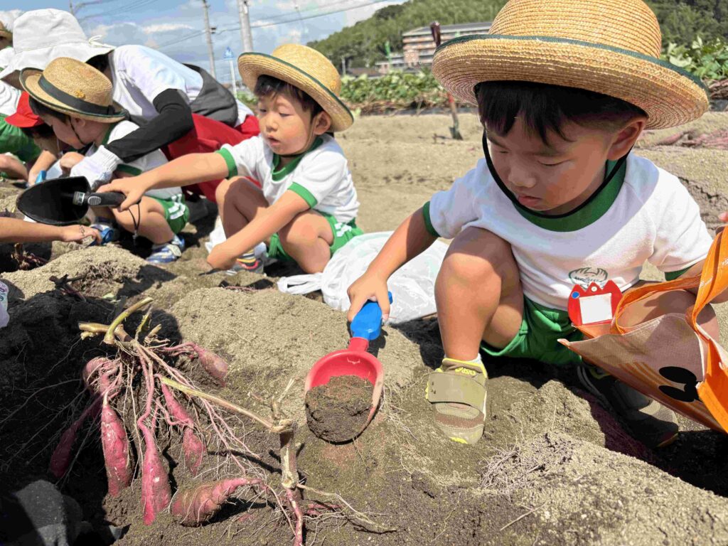 子どもたちが、箕島町のサツマイモ畑においもほりに行きました。