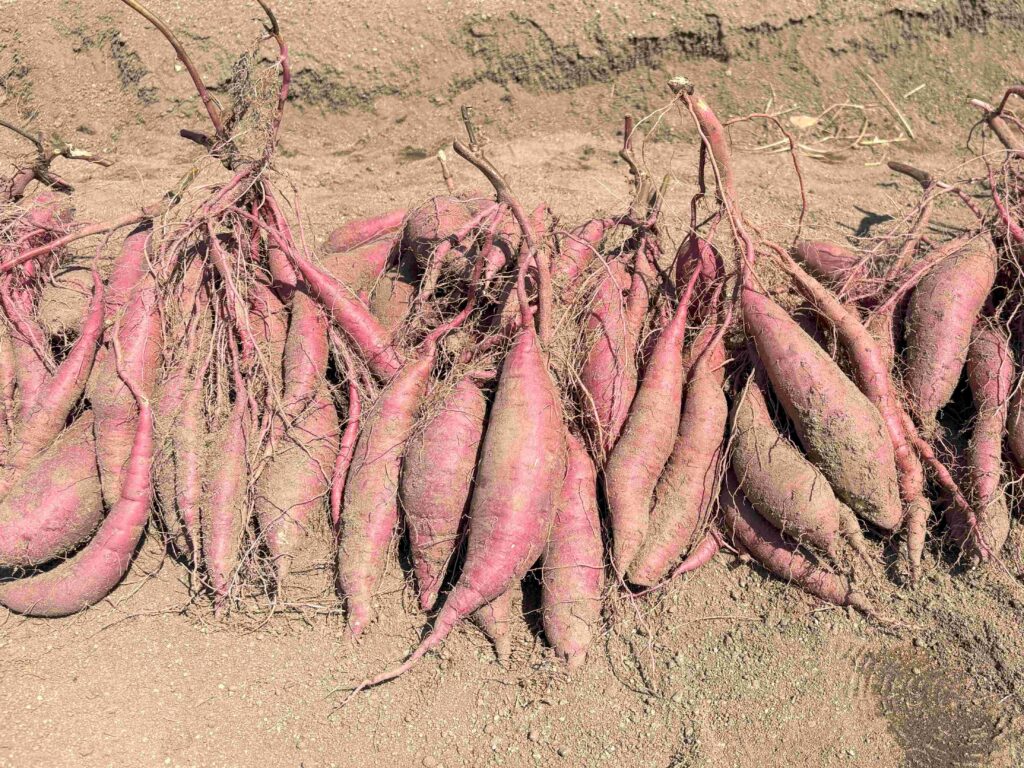 がんばって掘っています。土の中からサツマイモが見えてきました。