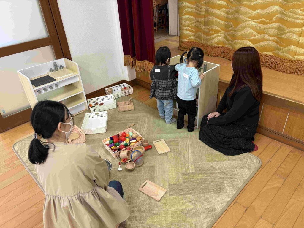 「おやこの遊び場 つぼみぐみ」は、先生と一緒に遊びながら、気軽に幼稚園体験を楽しめる子育て支援のイベントです。