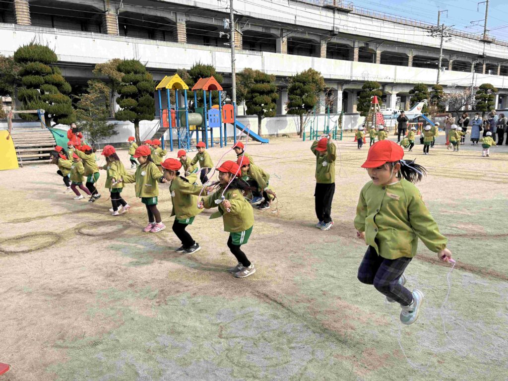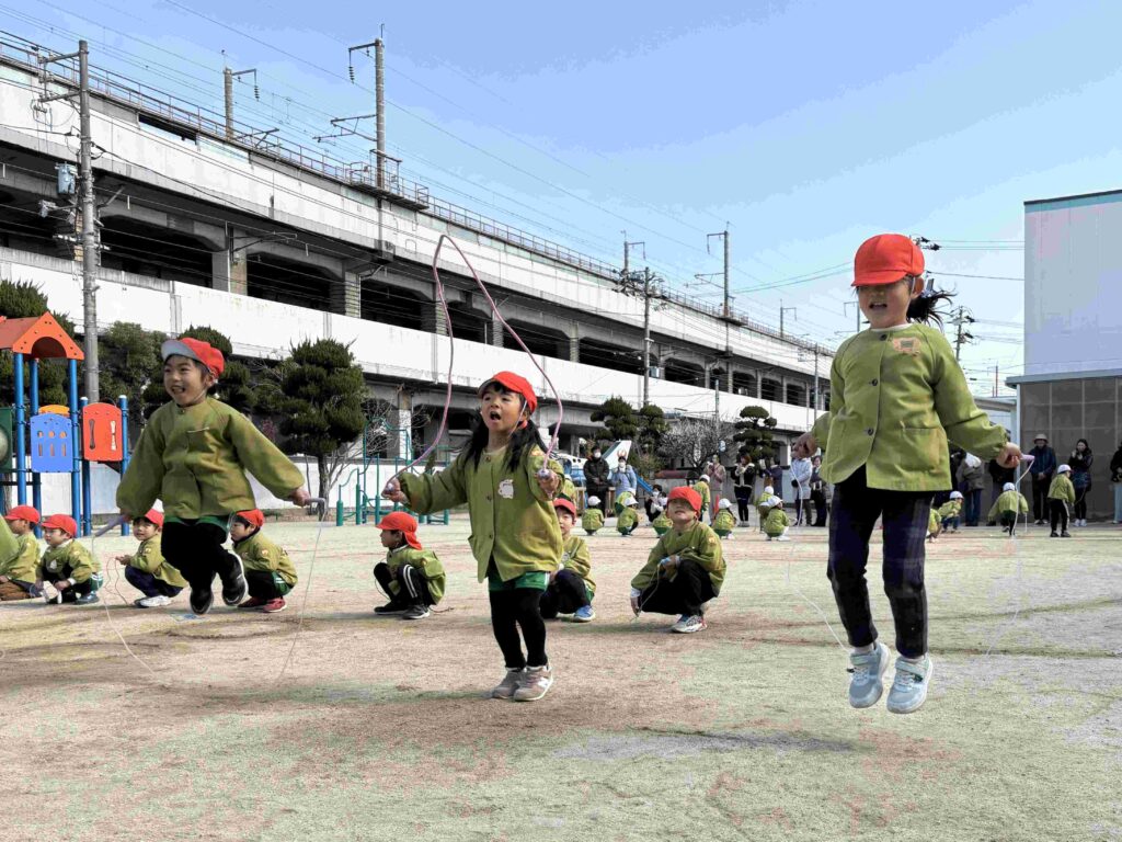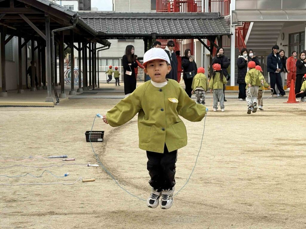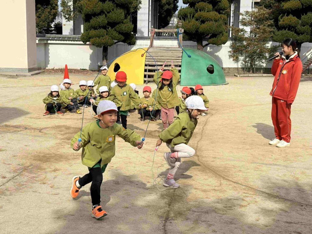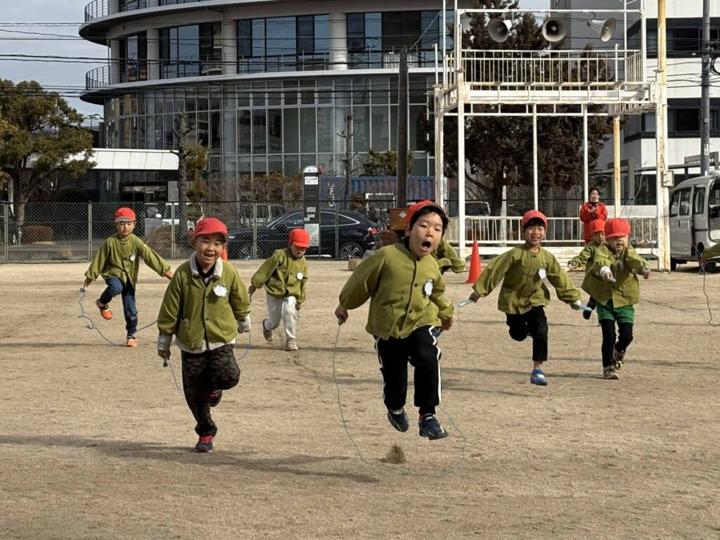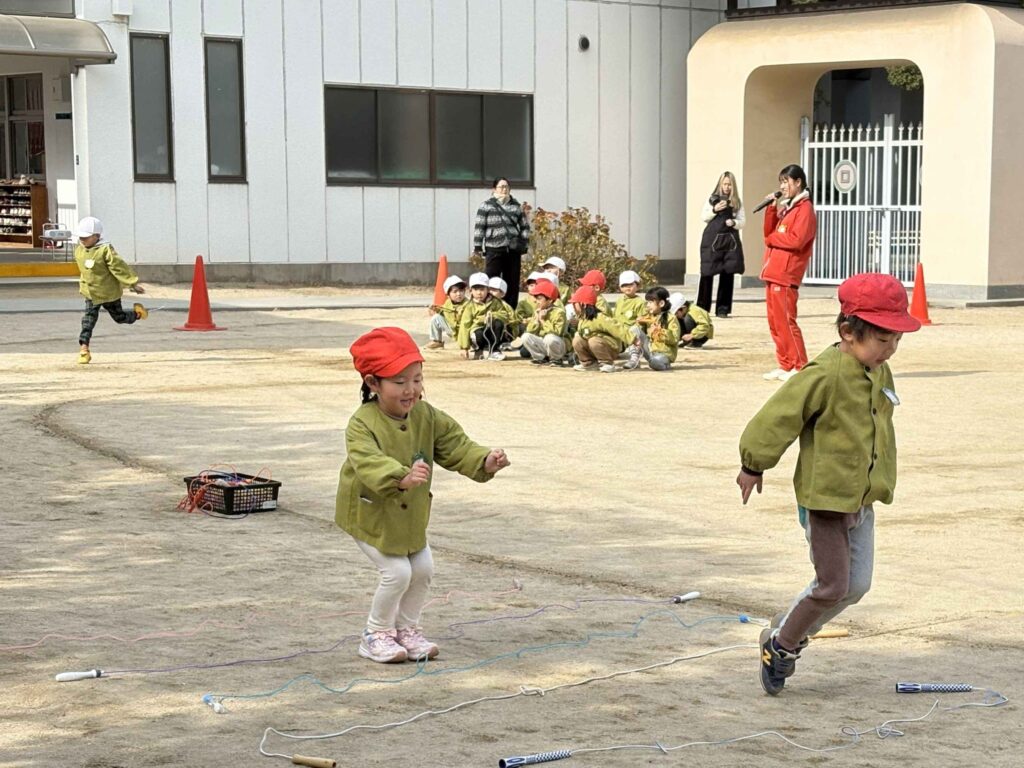 2026.01.28 なわとび大会 幼稚園では、秋からなわとびに取り組んでいます。その集大成として、なわとび大会がありました。 がんばってきたなわとびを披露。かなり跳べるようになりました。 楽しそうに跳んでいます。跳ぶリズムがいいです。 なわとびを使った楽しいゲームもしました。 なわとび、よくがんばりました。 前の記事へ 一覧に戻る 次の記事へ