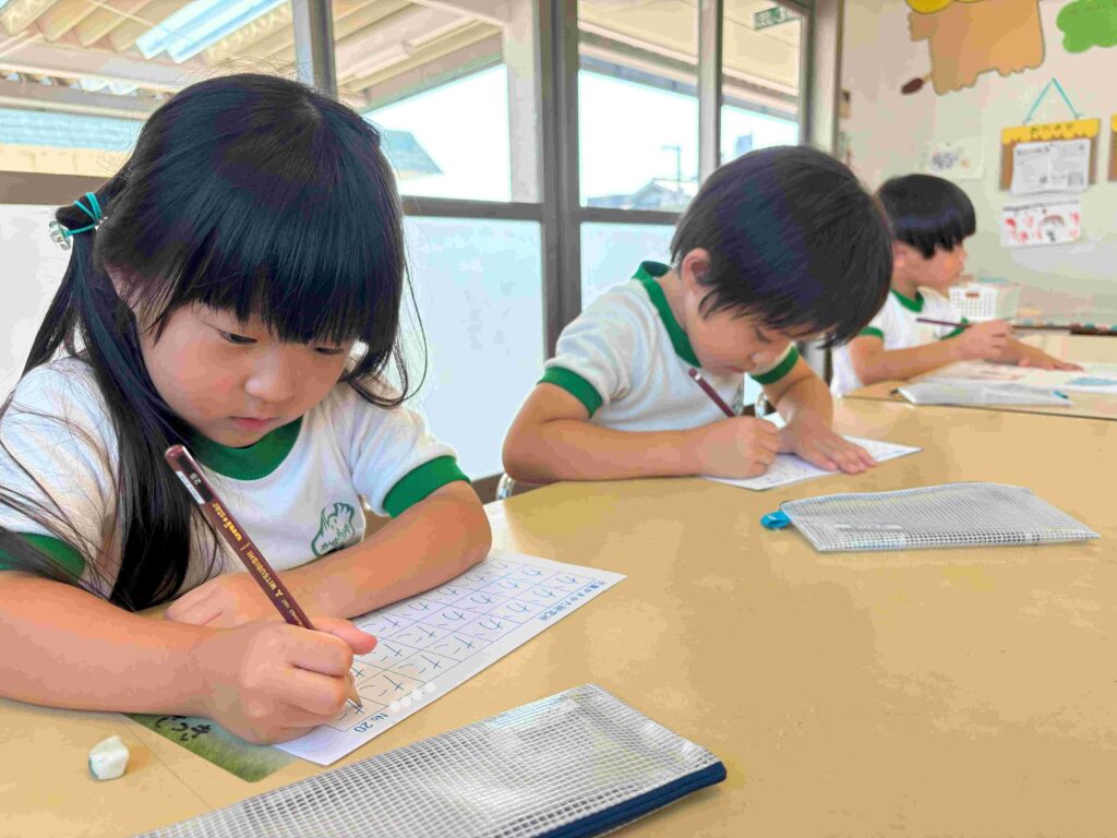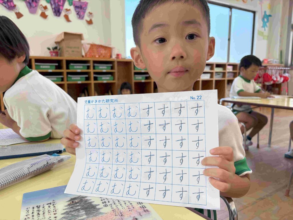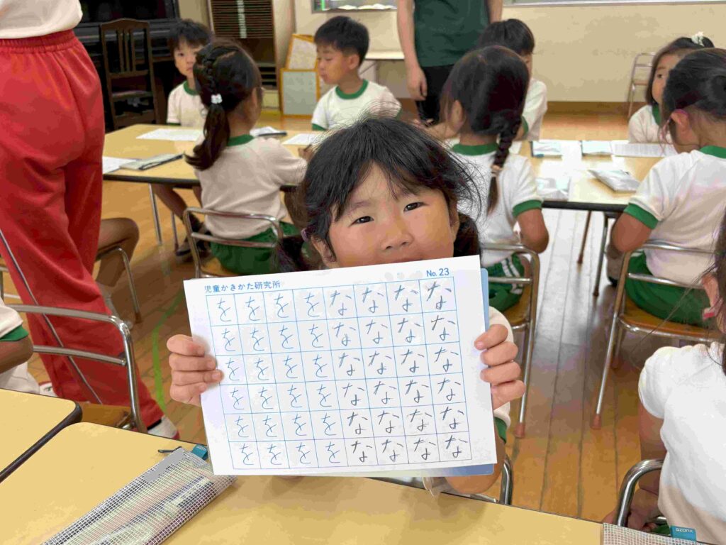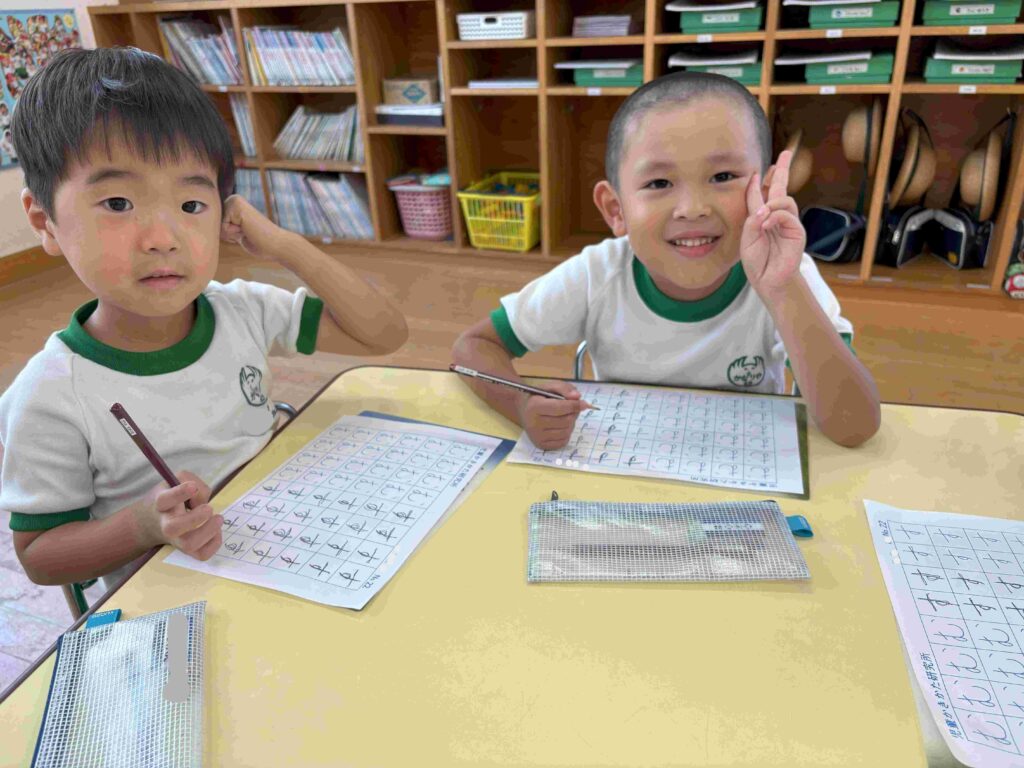 2025.09.22 ひらがなのおけいこ 子どもたちは年中組になって、ひらがなのおけいこを始めています。 良い姿勢で、正しく鉛筆を持って、丁寧にひらがなを書きます。 上手に書けています。書けるひらがなが増えてきて、子どもたちも嬉しそうです。 先生に指導してもらい、より上手に書けるように頑張っています。 今年度1年間で、ひらがなを全部学びます。頑張りましょう。 前の記事へ 一覧に戻る 次の記事へ