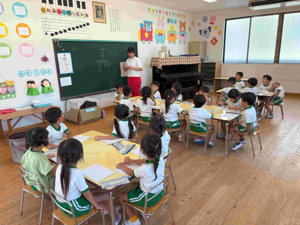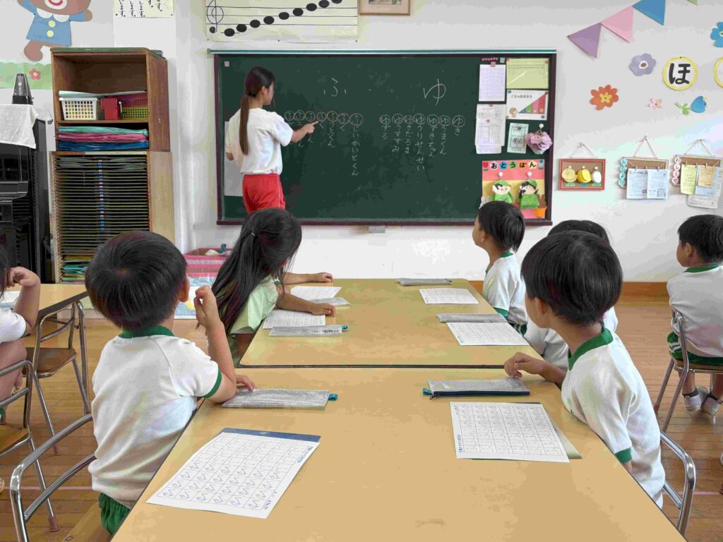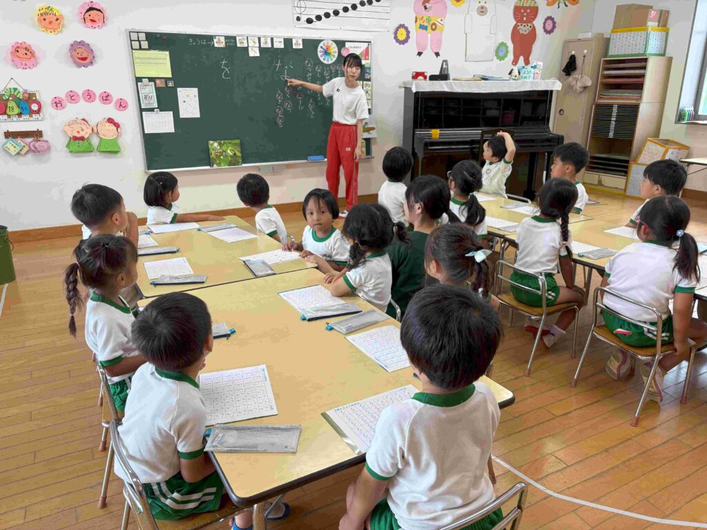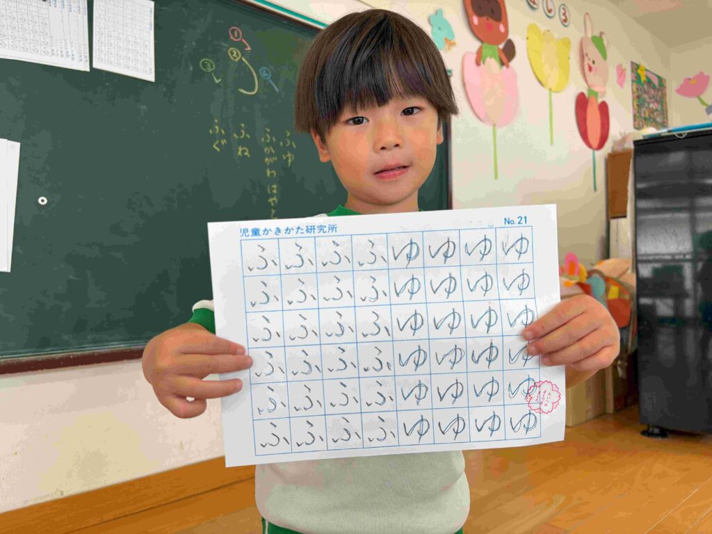 2025.09.22 ひらがなのおけいこ 子どもたちは年中組になって、ひらがなのおけいこを始めています。 良い姿勢で、正しく鉛筆を持って、丁寧にひらがなを書きます。 上手に書けています。書けるひらがなが増えてきて、子どもたちも嬉しそうです。 先生に指導してもらい、より上手に書けるように頑張っています。 今年度1年間で、ひらがなを全部学びます。頑張りましょう。 前の記事へ 一覧に戻る 次の記事へ
