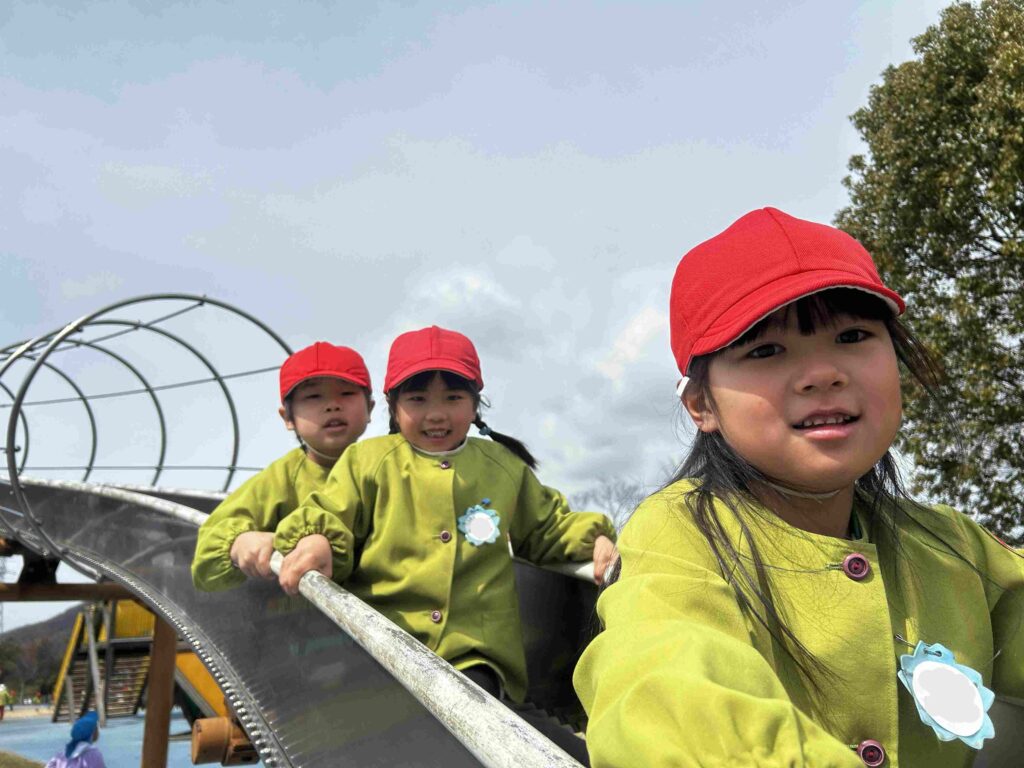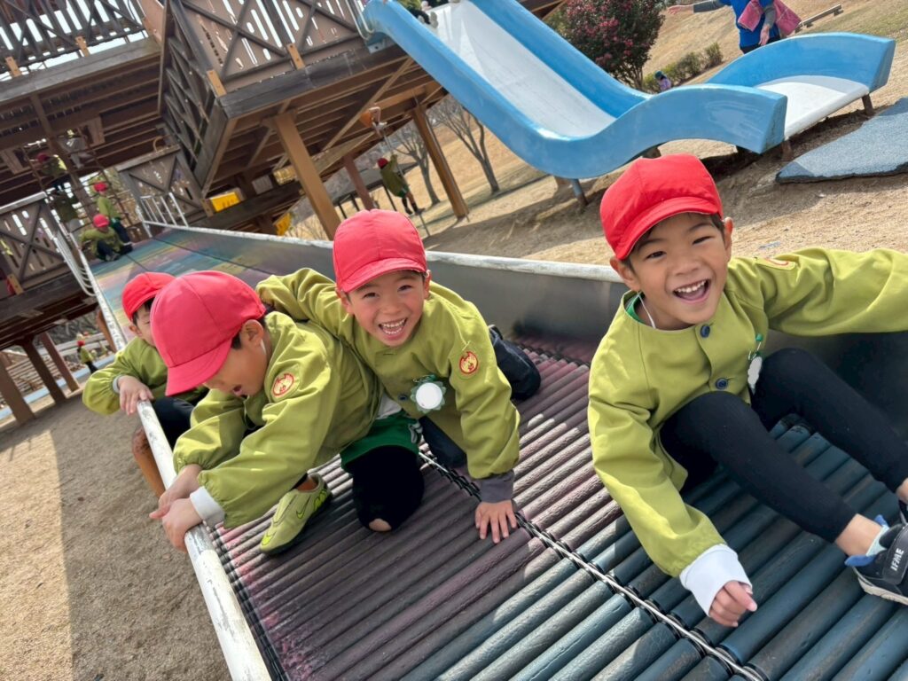 2026.03.09 びんご運動公園 尾道市のびんご運動公園に遠足に行きました。この日を楽しみにしていました。 広々とした素敵な公園です。たくさんの遊具がありました。 不思議な遊具もありました。子どもたちも夢中。 3年間で仲良しのお友だちがたくさんできました。 みんなで、お昼ごはんを食べました。仲良く楽しく食べました。 前の記事へ 一覧に戻る 次の記事へ