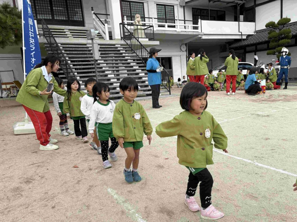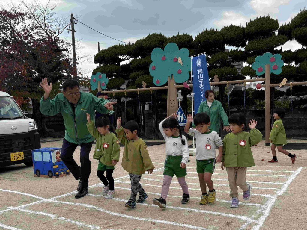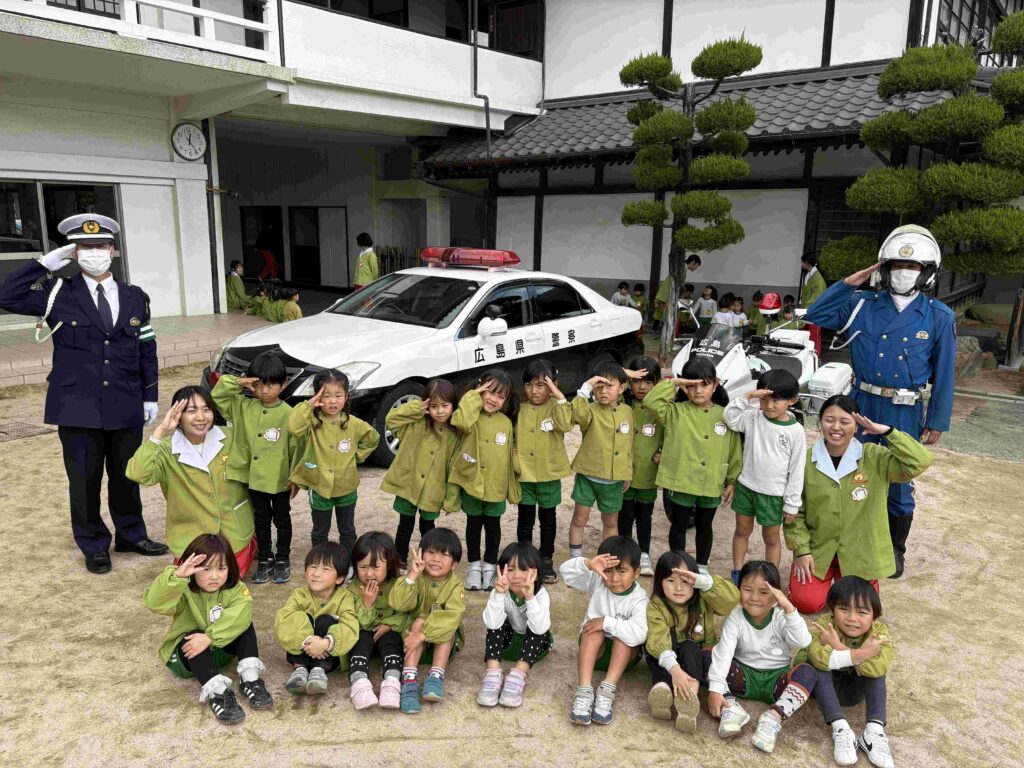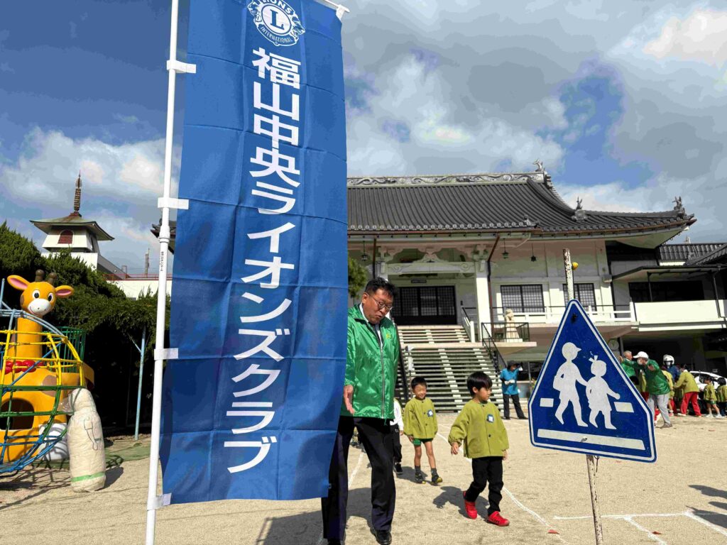 福山中央ライオンズクラブ、福山市市民生活課、広島県警の方が、幼稚園に来て交通安全教室を開いてくれました。