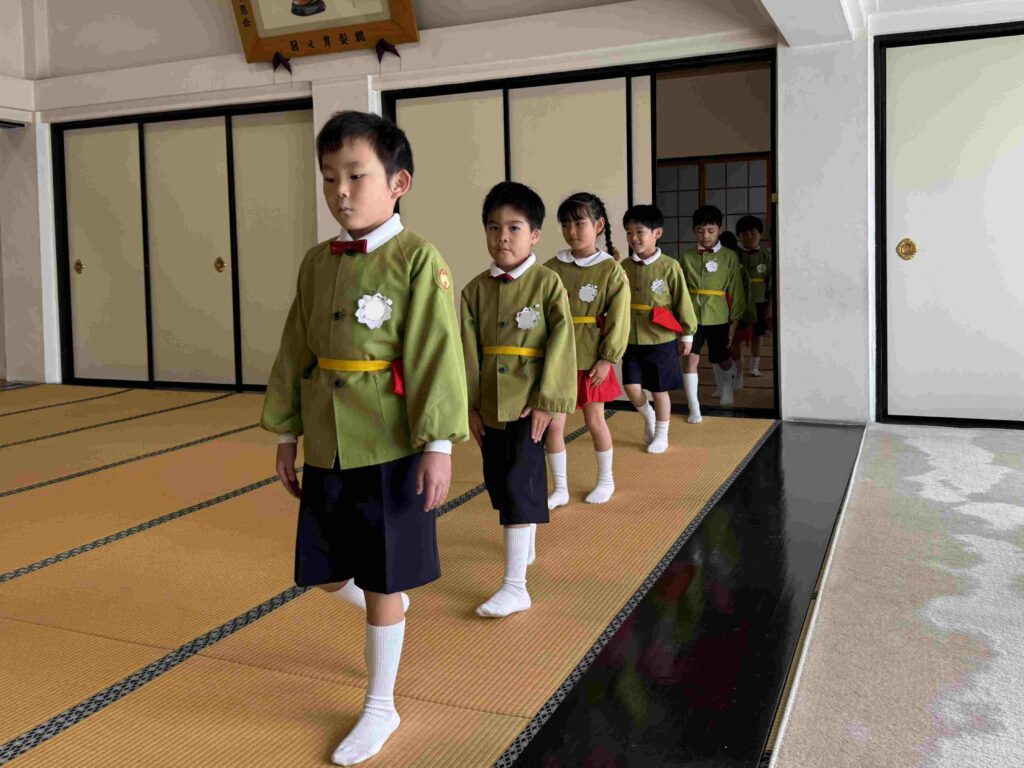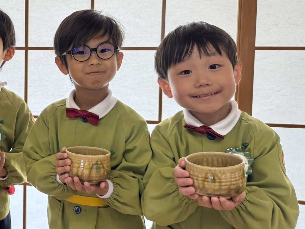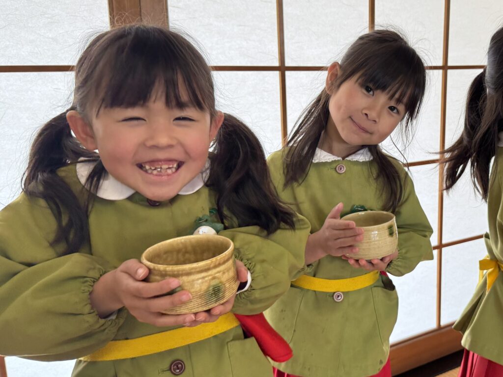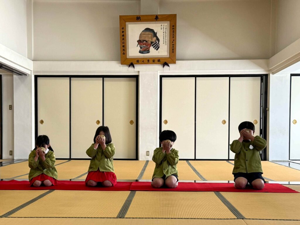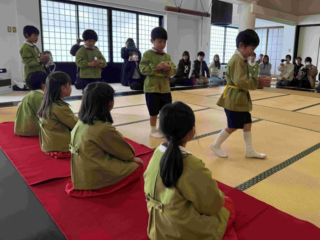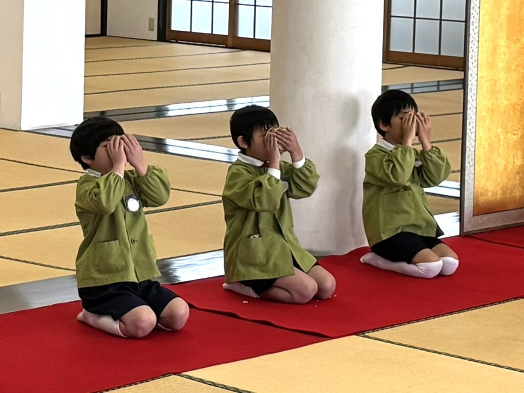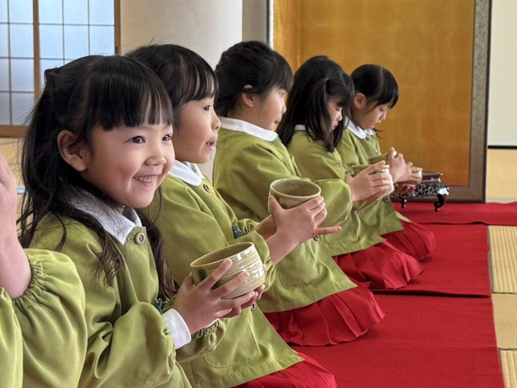 2026.03.06 卒園茶会 卒園を迎える年長組の子どもたちが、賢忠寺の御本堂でお茶会をしました。 子どもたちは、お運びさんとお客様に分かれて、お茶会をおこないます。 お茶会の和菓子、おいしくいただきます。 お稽古の時には飲まなかったお抹茶を今日はいただきます。少し苦かったみたいです。 幼稚園のいい思い出になりました。 前の記事へ 一覧に戻る