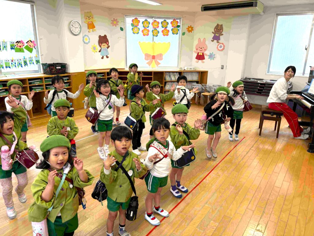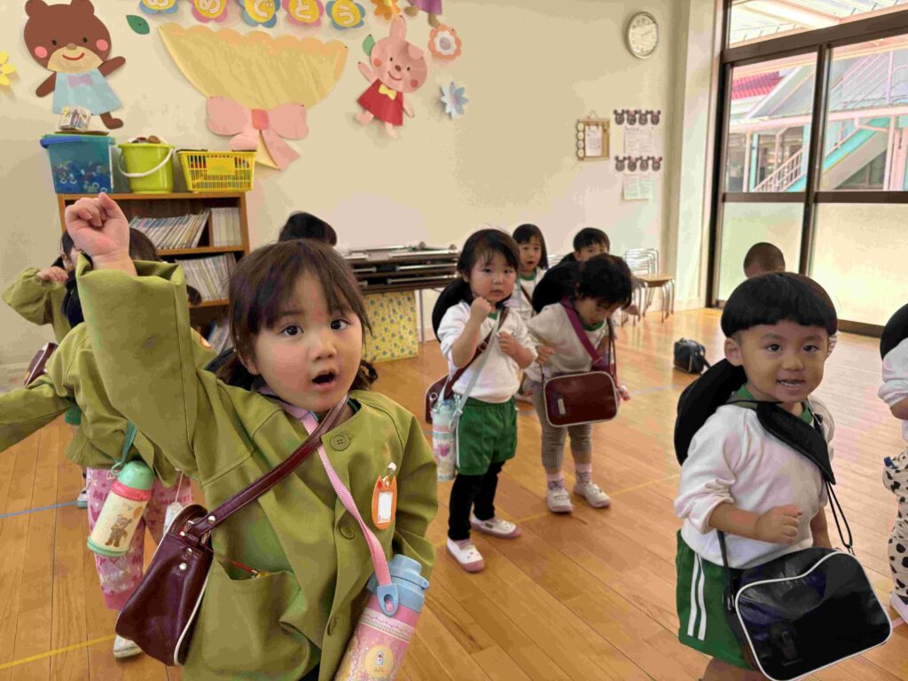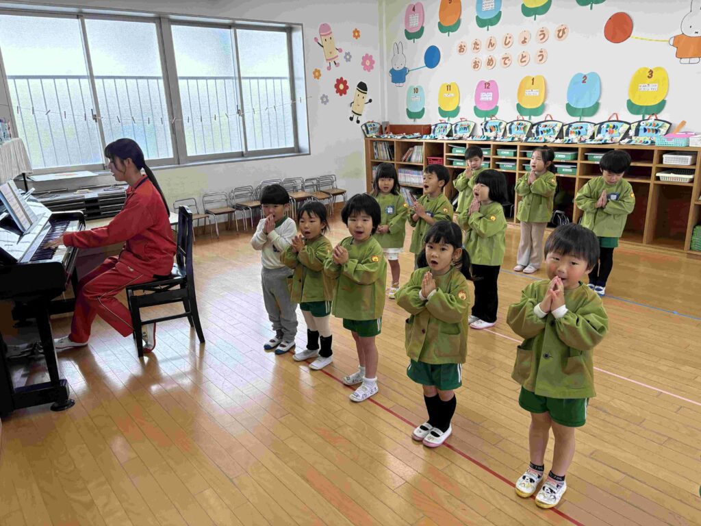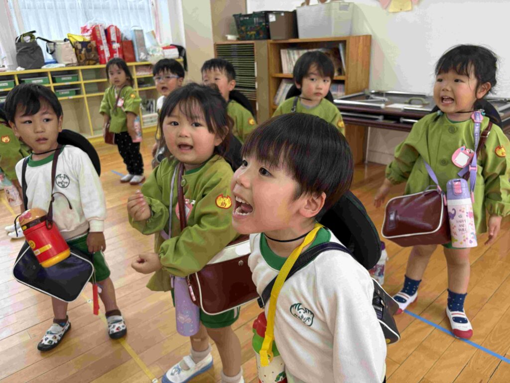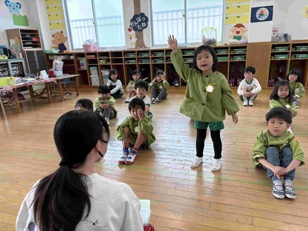 2026.04.17 朝の会・帰りの会 幼稚園では、1日の始まりと終わりに、朝の会と帰りの会をしています。 子どもたちの出席をとります。「はい、元気です。」 帰りの会では、次の日の予定を知らせたり、歌を歌ったりします。 明日も元気に参りましょう。エイエイオー! 前の記事へ 一覧に戻る 次の記事へ