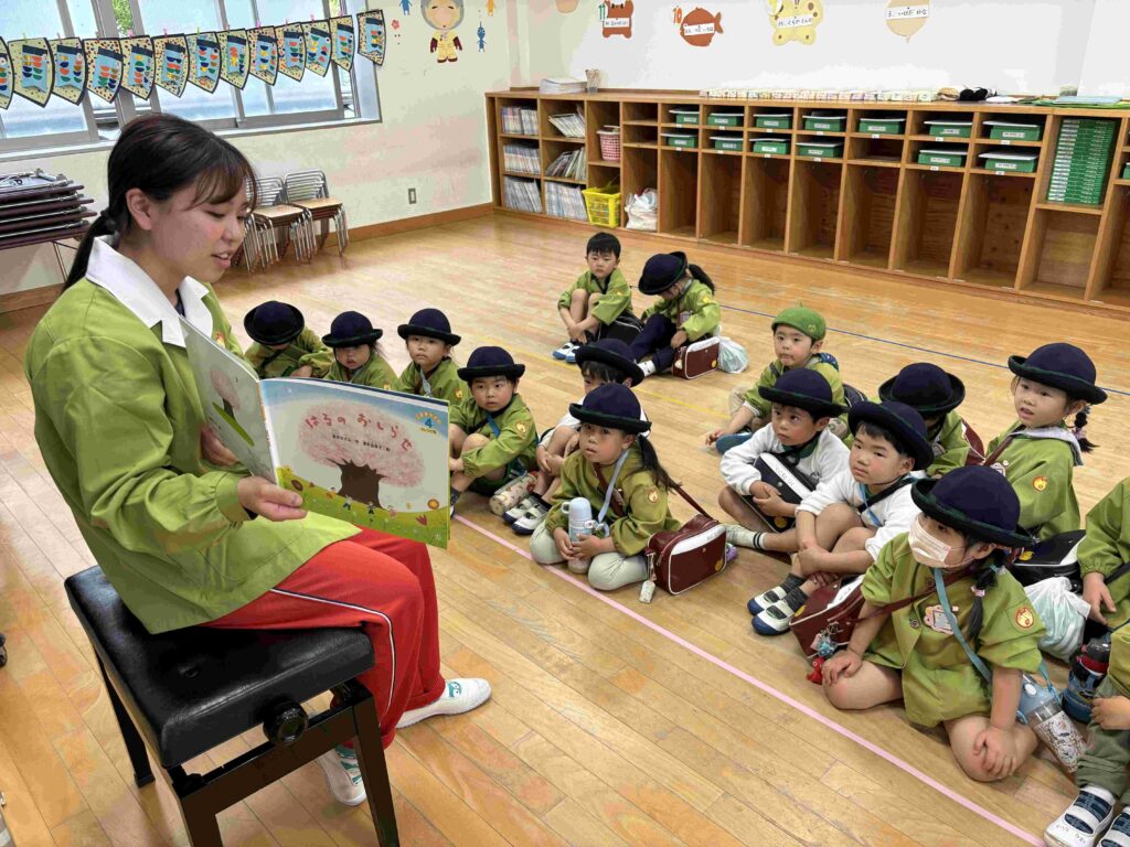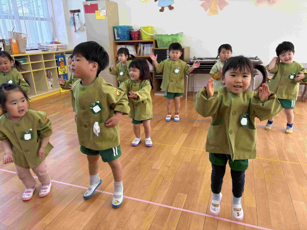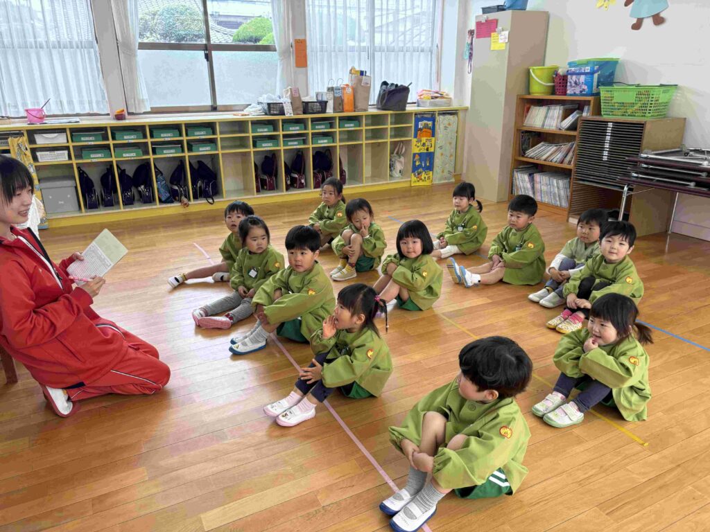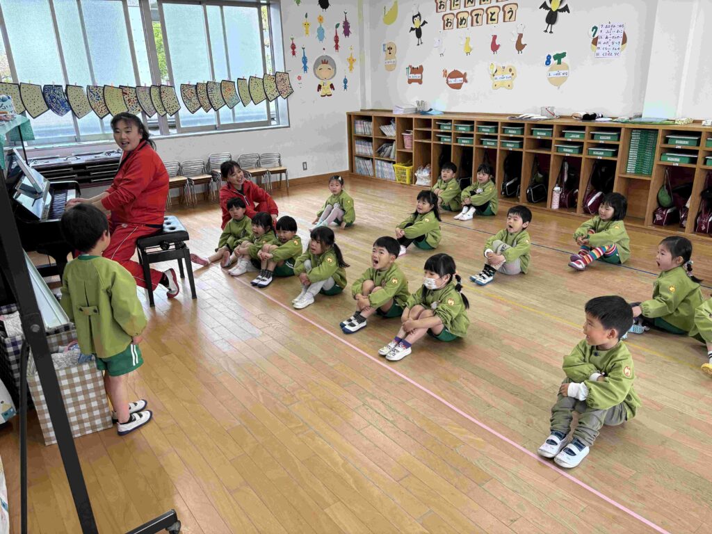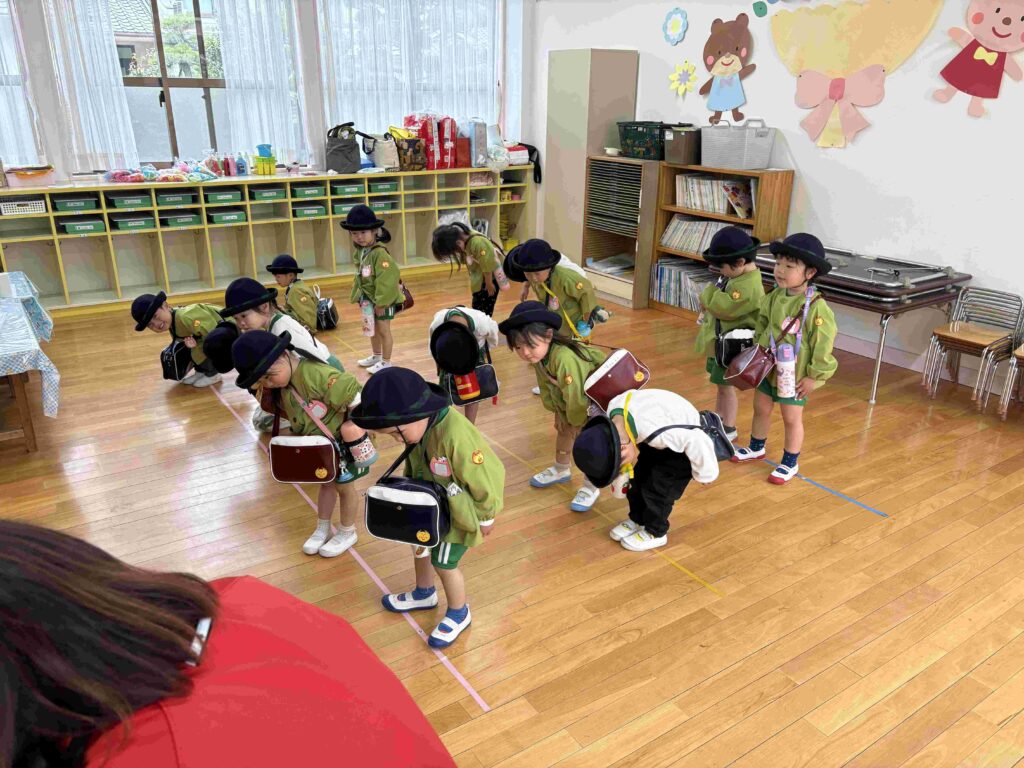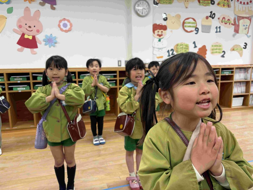 2026.04.17 朝の会・帰りの会 幼稚園では、1日の始まりと終わりに、朝の会と帰りの会をしています。 子どもたちの出席をとります。「はい、元気です。」 帰りの会では、次の日の予定を知らせたり、歌を歌ったりします。 明日も元気に参りましょう。エイエイオー! 前の記事へ 一覧に戻る 次の記事へ