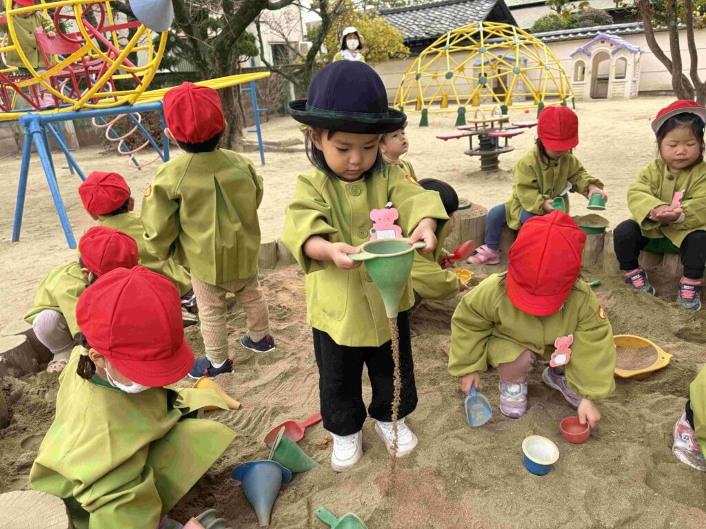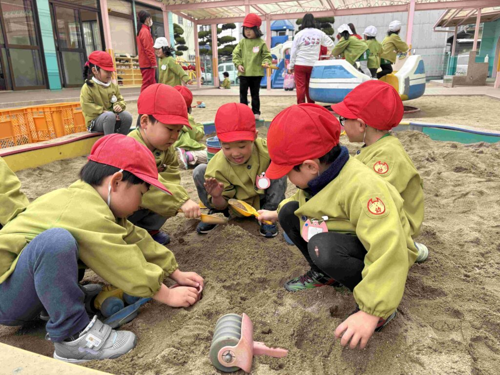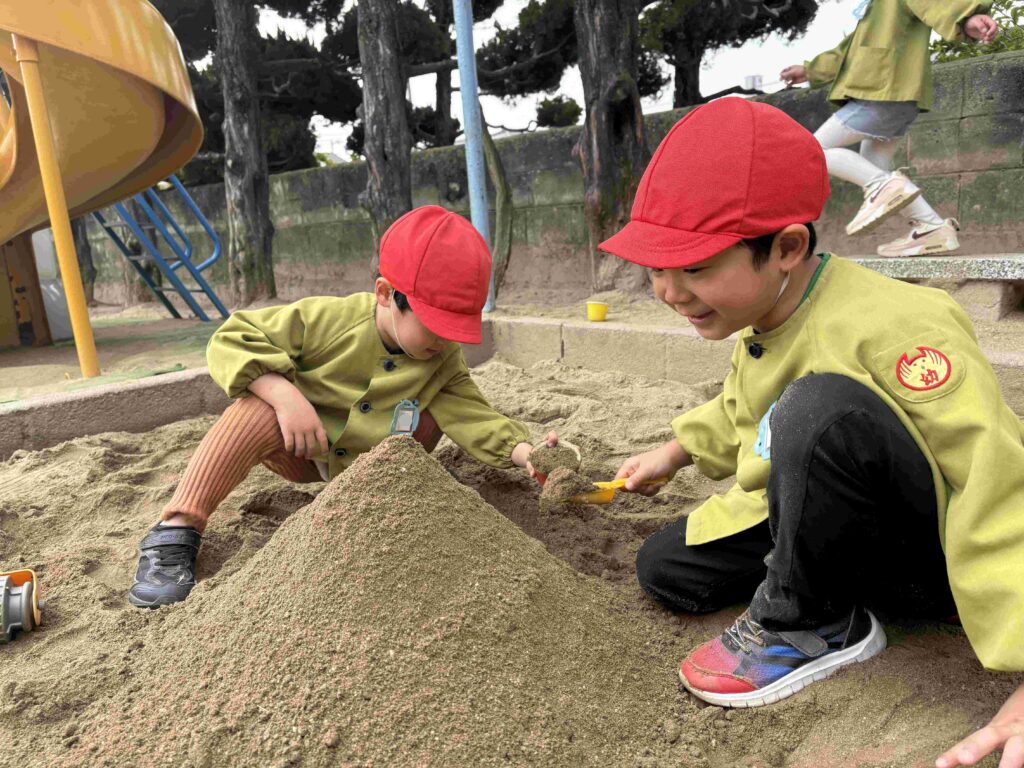 2026.02.17 砂場あそび 幼稚園には、砂場が4ヶ所あります。いろんな形の砂場です。 子どもたちは、砂場が大好き。いろんな遊びを思いついて、自由に遊んでいます。 お友だちと楽しく遊んでいます。いい笑顔です。 前の記事へ 一覧に戻る 次の記事へ