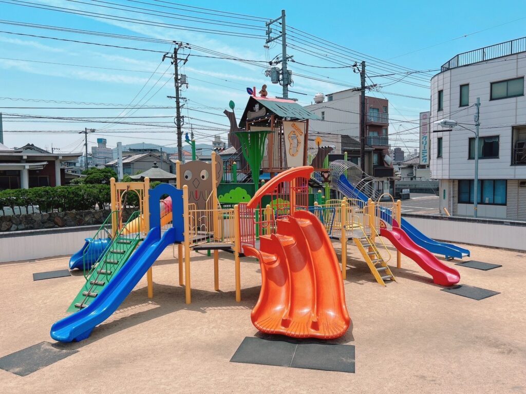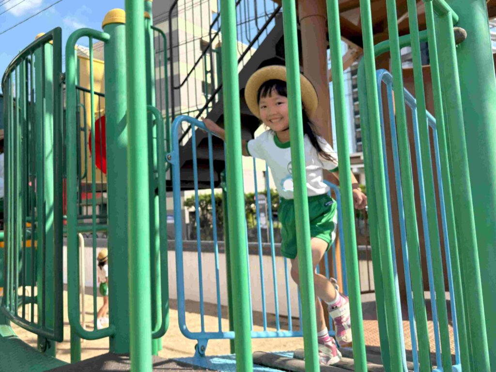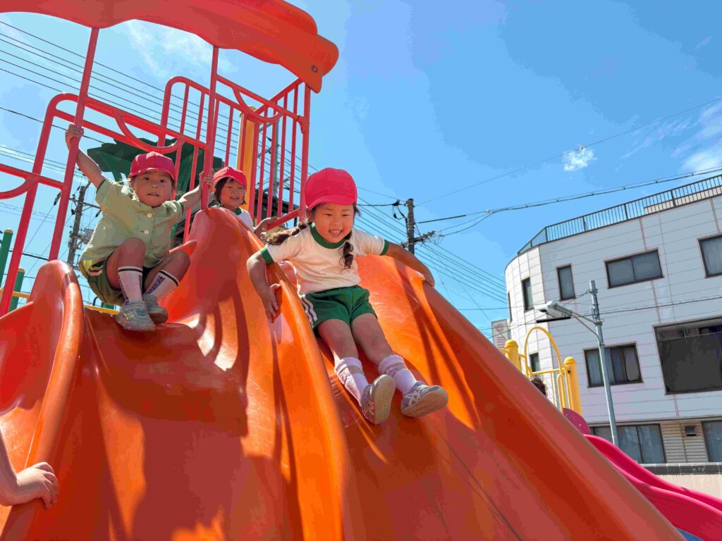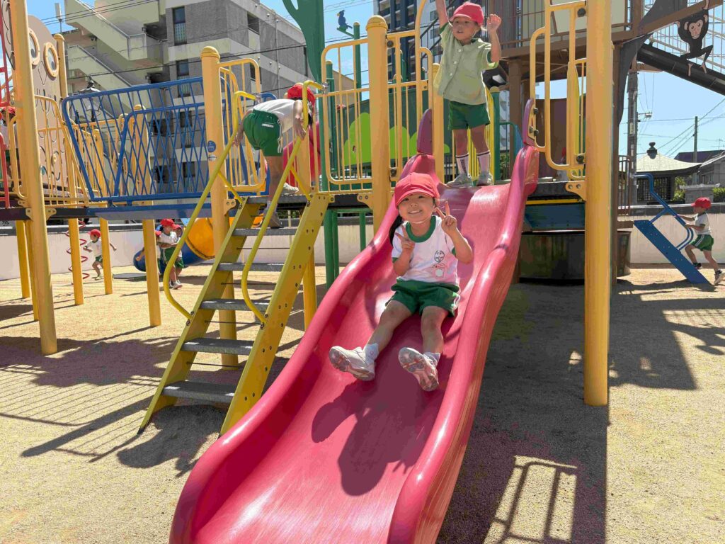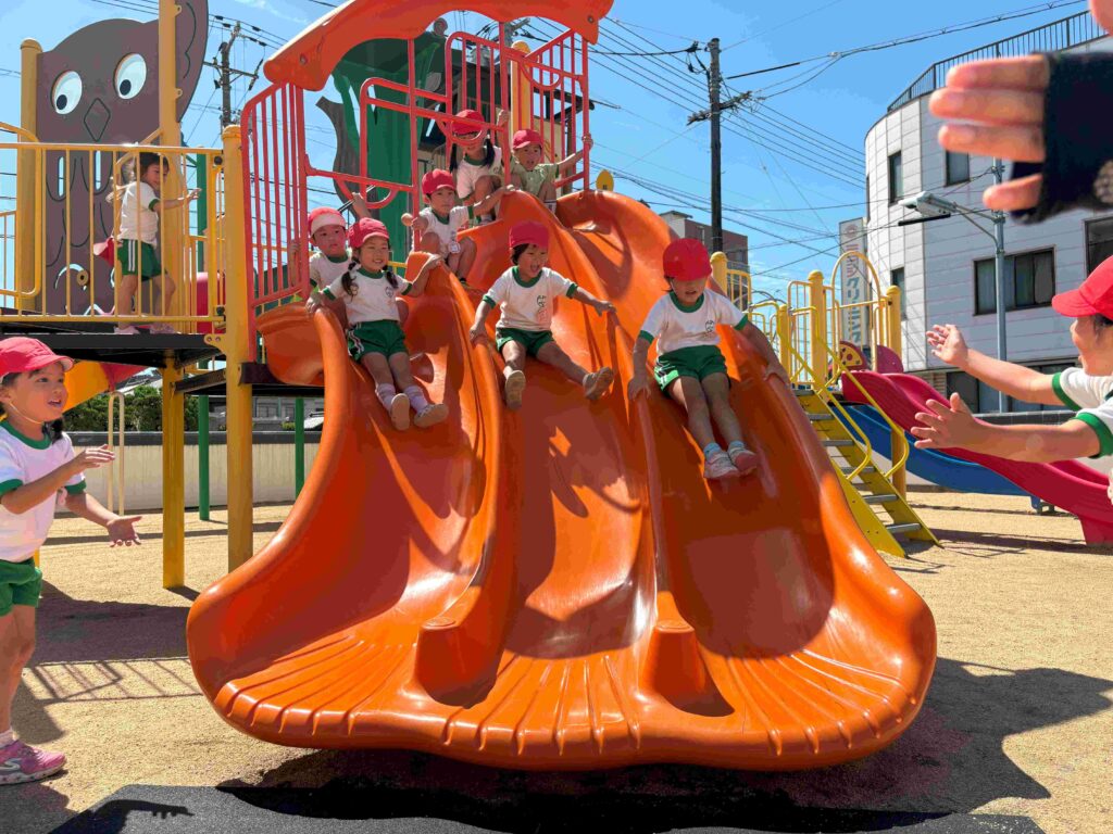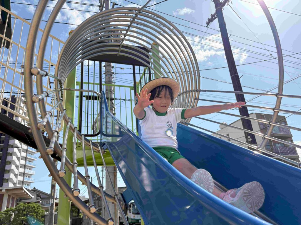 遊具には、すべり台がたくさんついています。いろんな種類のすべり台です。