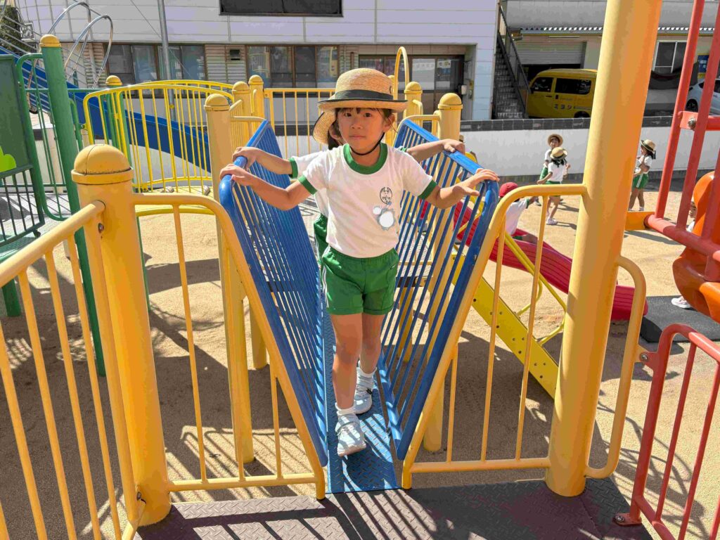 その中でも1番大きい園庭遊具は、園庭南側の遊具です。