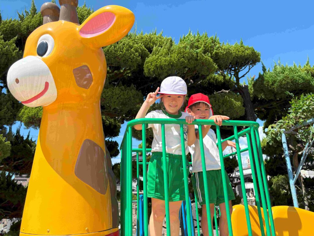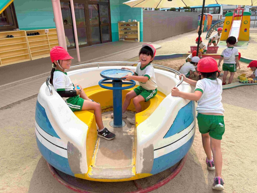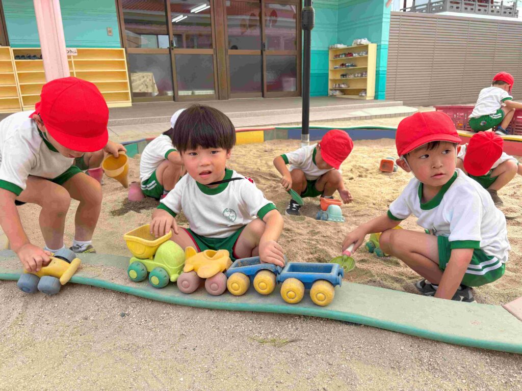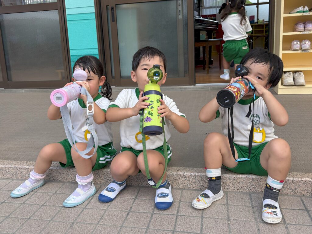 暑い中、短時間だけでもお外遊びをしました。とっても楽しそう。