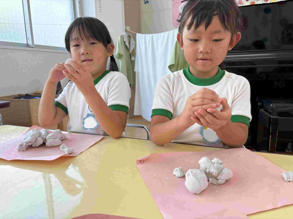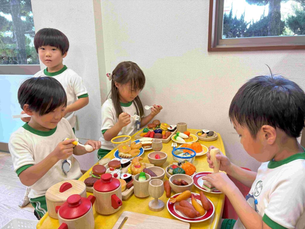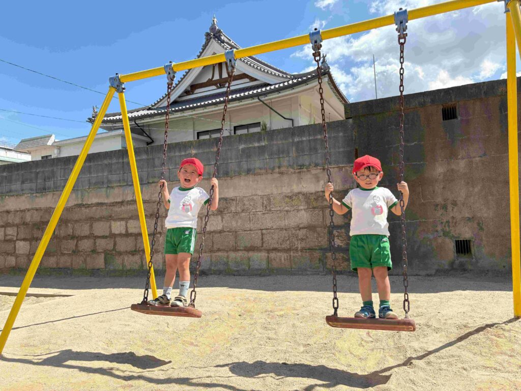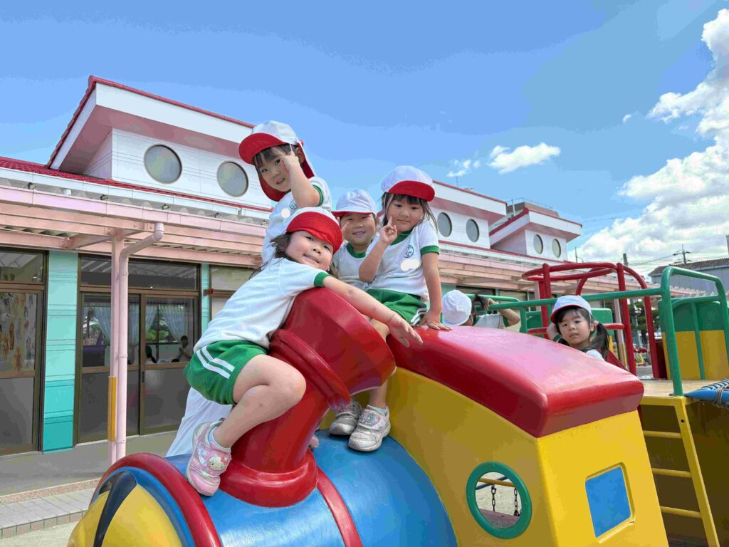 暑い中、短時間だけでもお外遊びをしました。とっても楽しそう。